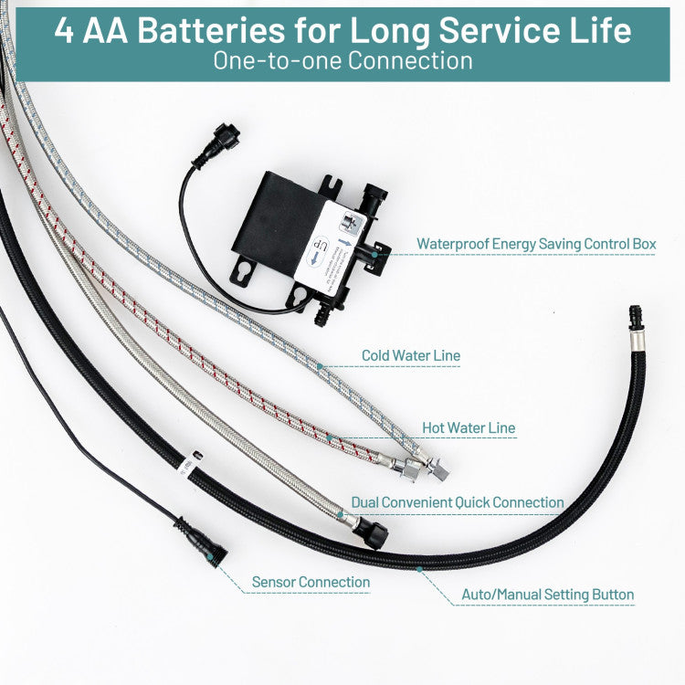 Equipped with a stretchable sprayer, the cleaning range can be extended to facilitate corner cleaning. And 3 water outlet modes (stream/spray/sweep) can meet your different daily needs, and you can shift the modes by pressing the buttons easily. The single handle can control the water temperature and volume. What’s more, the built-in infrared sensor switch provides enough convenience while doing housework. Since its classical brushed metal appearance, our adjustable sink water tap can be assembled in the bathroom, kitchen or laundry. Comes with a deck plate, you can choose a single hole installation or a 3-hole installation as needed.
