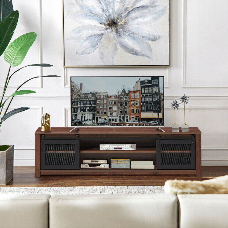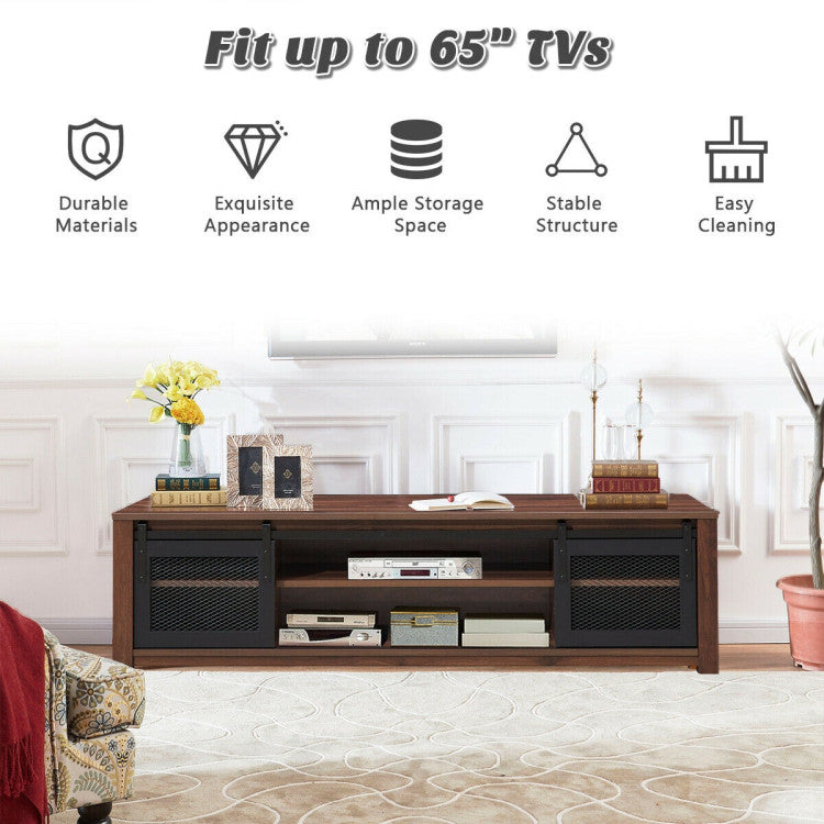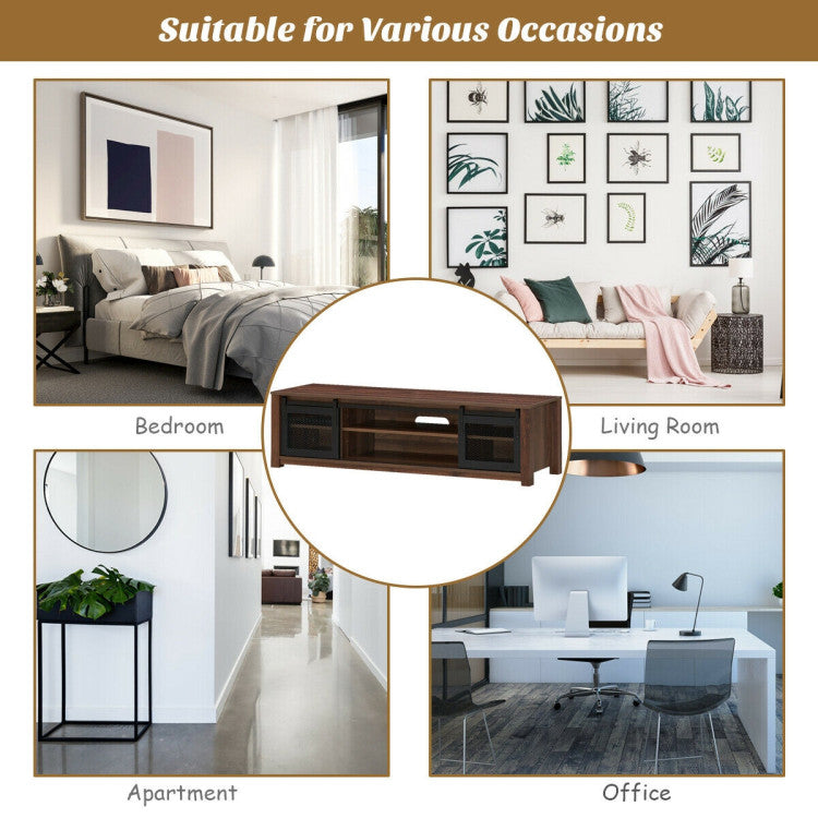 Crafted of high-quality engineered wood and MDF, this TV cabinet is stable and durable for long-term use. The spacious desktop will fit up to a 65" TV and some decorations. With an adjustable design, 2-tier storage shelves and two large cabinets can offer plenty of space and meet the needs of items of different heights. What's more, two sliding metal mesh doors allow you to adjust the door position freely and add an aesthetic feeling to this TV stand. With a clean line and modern appearance, it is suitable for your living room, bedroom, office, etc.