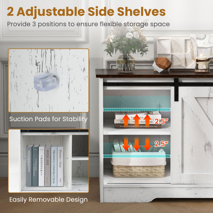 -The media console cabinet is designed with 2 sliding doors for easy access