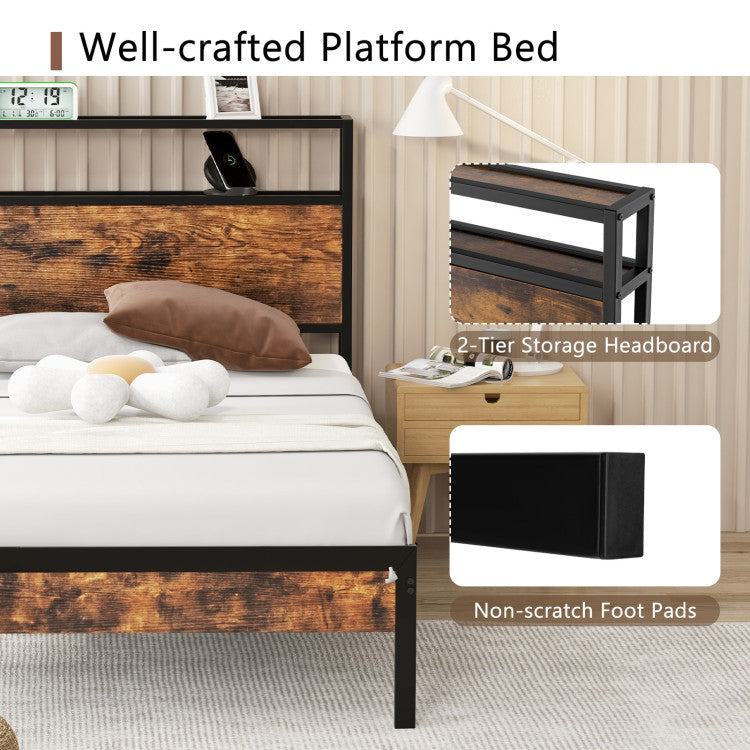-2-tier storage headboard offers a close-to-hand storage solution