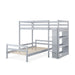 The equipped 4-layer bookcase can accommodate diverse items, such as books, decorations, toys and more. 2 separate twin beds feature an upper and lower design to save more space. Therefore, the bunk bed is perfect for small rooms. What's more, each twin bed and bookshelf come with a wooden structure made of solid wood and premium MDF, so their load capacities have been highly improved (each bed: 309 lbs, bookcase: 204 lbs). There is a 12.5" guardrail on the upper twin bed. The entire bed frame can be fixed to the wall with hardware.