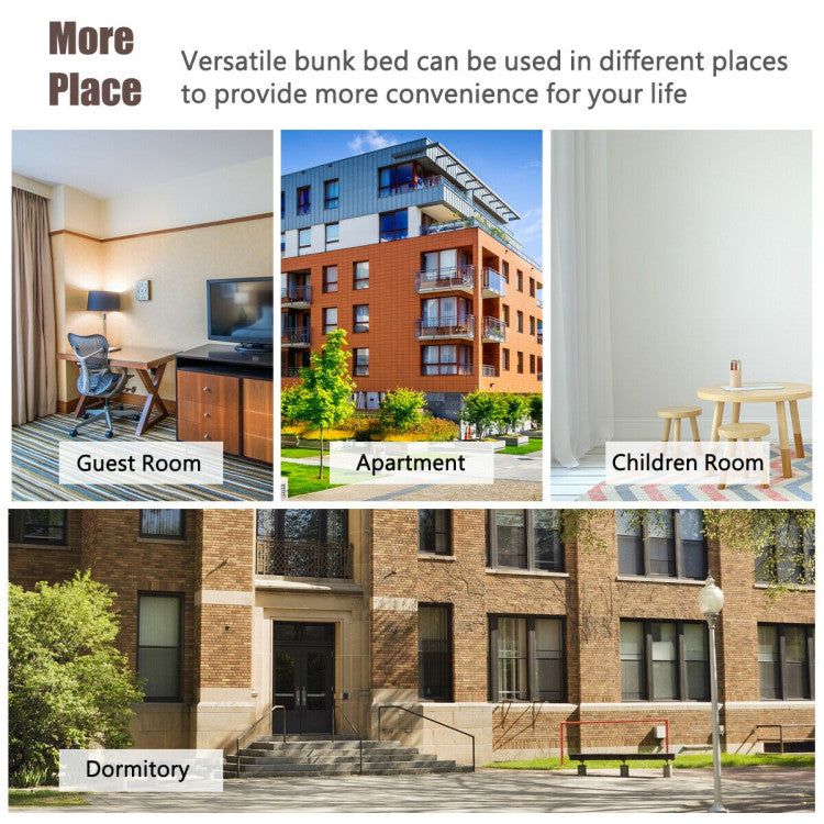 The maximum bearing capacity of each bed can up to 200 lbs. Full-length guardrails greatly protect kids. This bunk bed is equipped with trundles, which makes it more easier to convert to different forms. 3 in 1 design is perfect for all kinds of occasions, detachable design allows bunk bed to be divided into 2 separate beds. This multifunctional bunk bed is also a great choice for limited space. Stylish appearance is popular and highly compatible with surroundings.