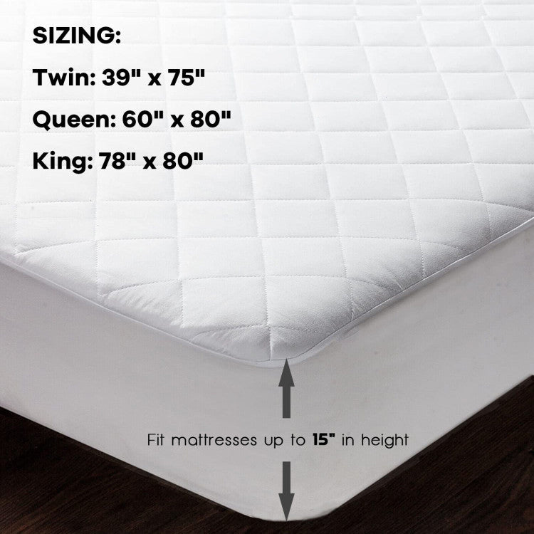 The fabric sides use single-track stretch to fit mattress up to 15" thick, making it wrap your mattress 360 degrees. In this way, you do not have to worry about a messy bed anymore. In addition, it can heat up in seconds to reach your desired temperature. We have carefully designed 10 temperature levels (ranging from 84 - 108°F) on the handy control panel. Apart from that, 1-12 hours timing function allows users fall asleep freely. And 8 hours auto-off protection design saves energy and prevents over-heating.