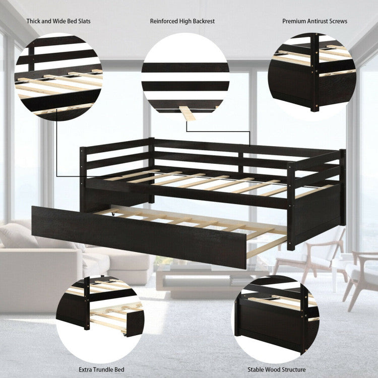 The wood daybed with a trundle provides you a stylish and strong support. This twin daybed frame is made of solid wood which is stable and durable for long years of enjoyment.