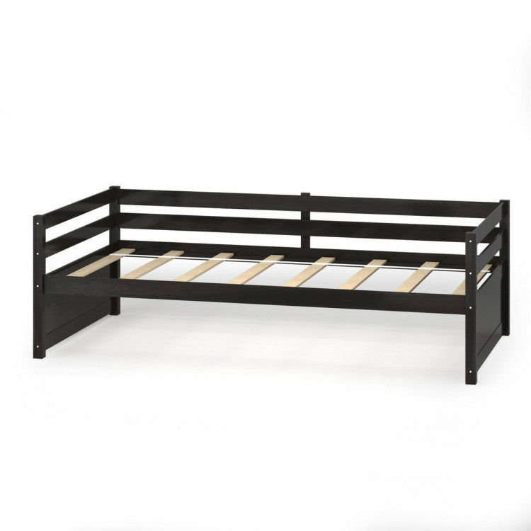 Multifunction daybed can be used as a sofa or 2 twin beds. With solid legs and thick slats, the daybed has a high weight capacity to firmly support your mattress without additional box spring. This daybed with slatted decor has a modern and concise design which can go well with the decoration of your rooms. Combining with reliable quality and premium craftsmanship, it can provide you with excellent comfort while sleeping.