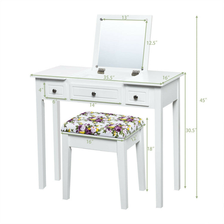 | Vanity table size | 35.5" x 16" x 45" (L x W x H) |