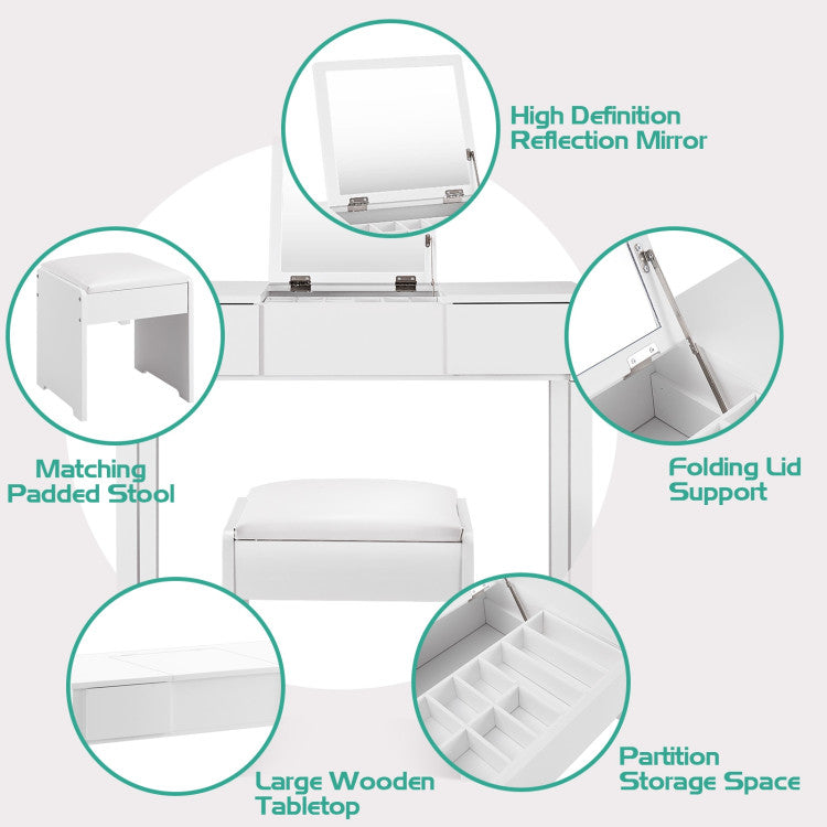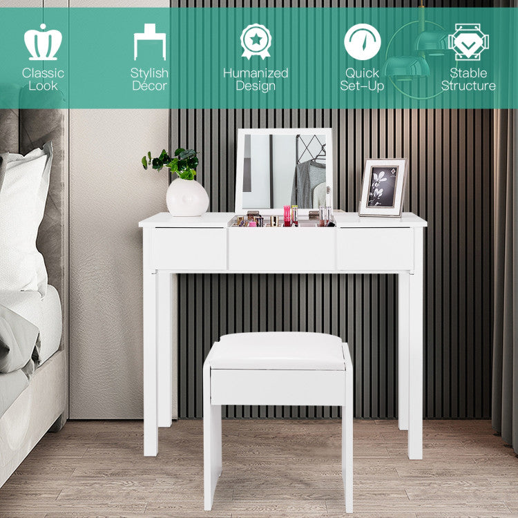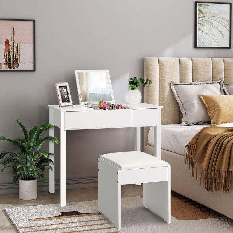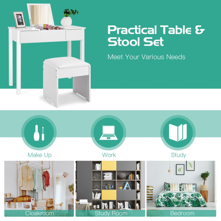 This makeup dressing table and stool set, with a simple modern style, is a perfect choice for any bedroom.