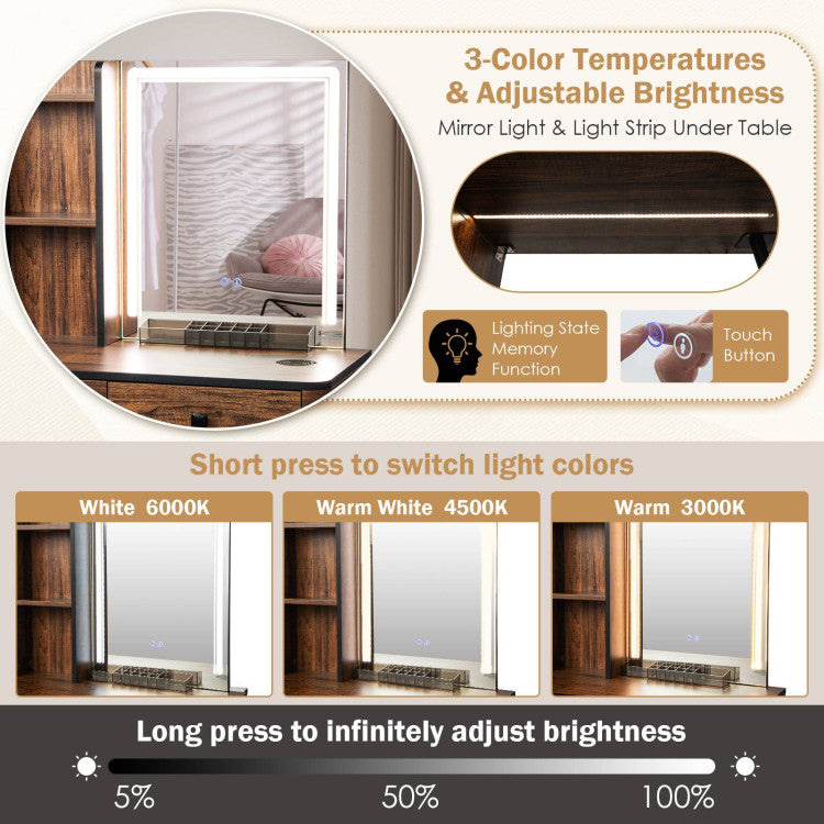 -Includes a vanity table with mirror, 3-chest drawer and cushioned stool