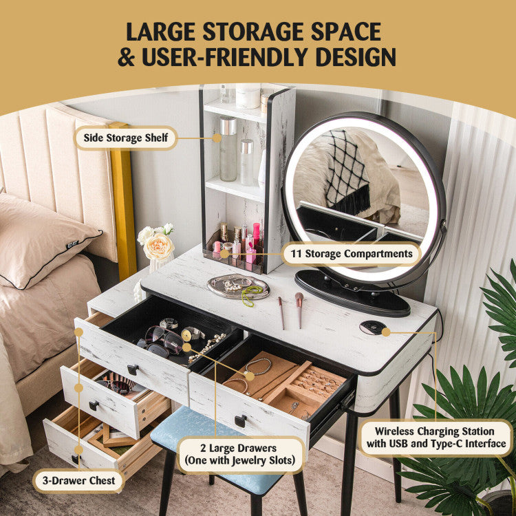 -Including 1 vanity table with mirror,1 stool,1 acrylic cosmetic tray and 1 user guide