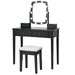 Looking into the clear mirror with 10 dimmable light bulbs will make it convenient for you to dress up yourself. The smooth surface and the round edge show the simple design while the whole construction contributes to adding a sense of elegance to your living condition. Its reliable MDF and wooden frame will ensure the stability when you are enjoying your beauty.