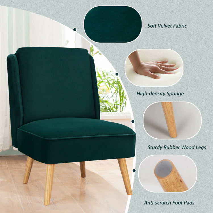 Pinewood frame and rubberwood legs make our chair durable and sturdy. Non-slip pads prevent scratches on the floor and ensure overall stability. Besides, skin-friendly velvet fabric offers you a soft touch and super comfort. An ergonomic backrest with a cushion is beneficial to your waist and back. Apart from that, it is a perfect addition to your living room, bedroom, and dining room. It can serve as a vanity chair, a reading chair, or a dining chair according to your different needs. Additionally, this accent chair comes with all necessary hardware and detailed instruction, allowing you to easily assemble it.