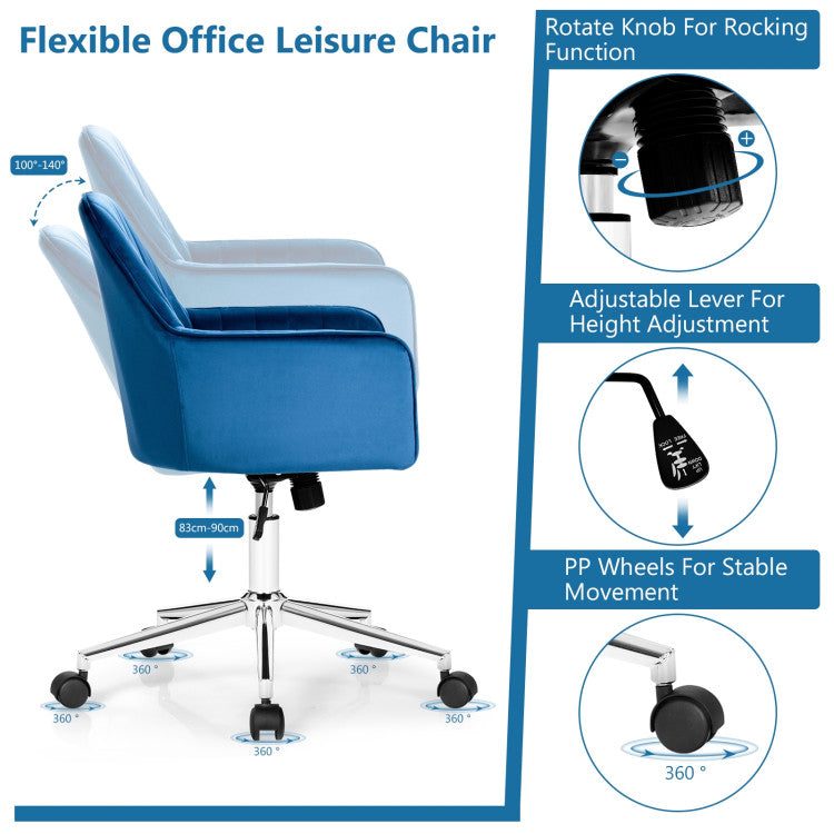 Equipped with a metal 5-claw base, the overall stability of the home office chair is greatly ensured. The entire surface is made of skin-friendly velvet, and the cushion backrest are filled with high-density sponge, both for enhanced comfortableness. This ergonomic design with integrated armrests will better fit and support your back as well arms. The height of vanity chair is adjustable from 32.7" to 35.4", which makes the chair suitable for people of different heights. We also take into account the individual needs. The cushion is detachable, which allows you to change it to your own cushions. You can place this leisure chair in different places, as an office chair, a makeup chair, a computer chair and more.