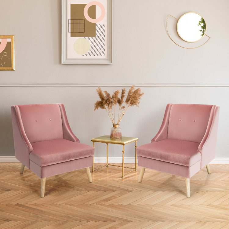 This accent armchair is beautifully designed with a high wingback and swoop armrests without sacrificing any comfort. The cushion is plush to sit and is filled with high-density sponge and springs to ensure lasting plumpness. And this accent chair uses luxury yet low-profile velvet fabric, which is stain-resistant and easy to maintain, making the accent chair even more dashing for most of the home decorations. Framed with a plywood wood structure supported by 4 rubber wood legs, this single sofa can stand 265 lbs of maximum weight. Ideal for staying in your living room, bedroom, and more, this chair has a suitable size for medium-sized spaces.