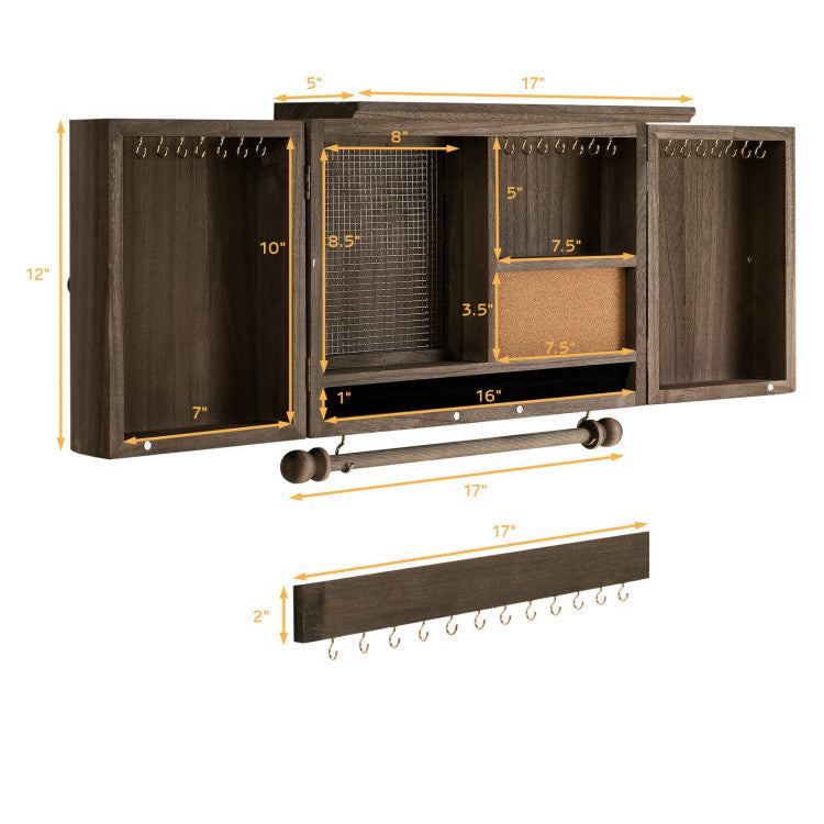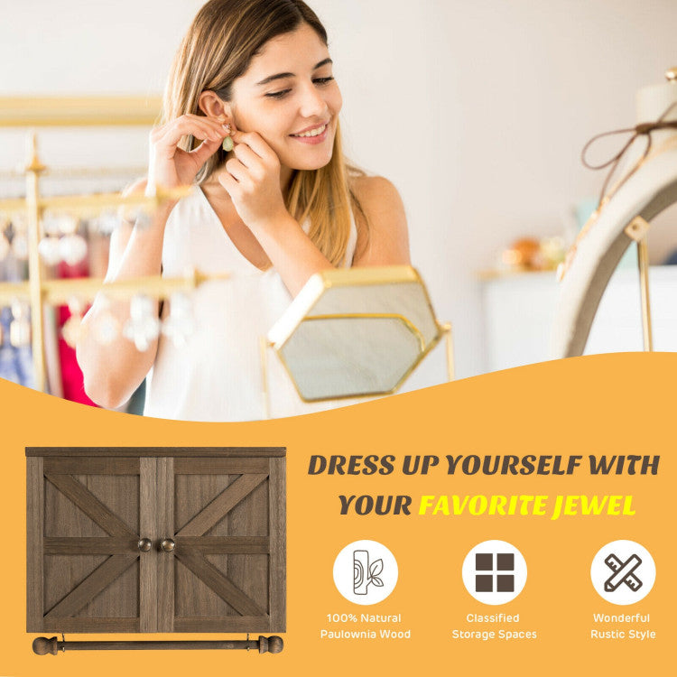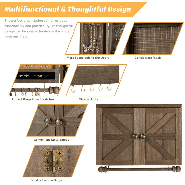 This vintage wood wall mounted jewelry organizer with barn door is the perfect gift for yourself or your lovers.