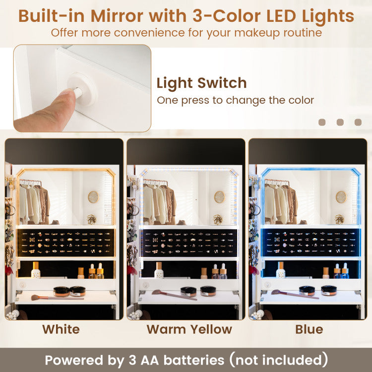 -Built in makeup with 3-color LED lights
