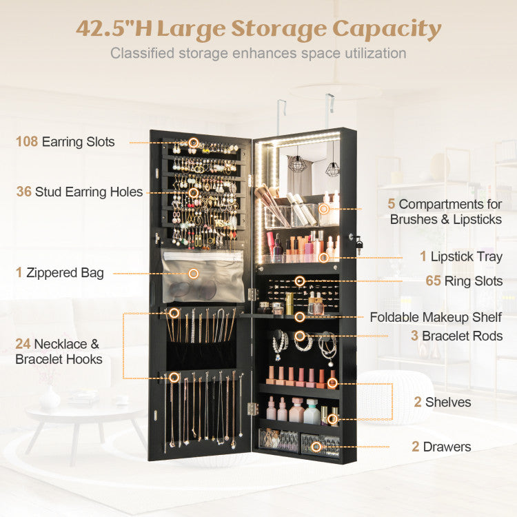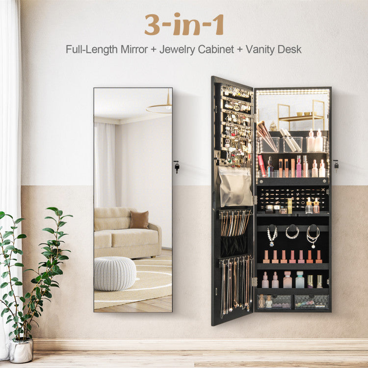 -Equipped with 2 mirrors: a full-length dressing mirror and inside small makeup mirror