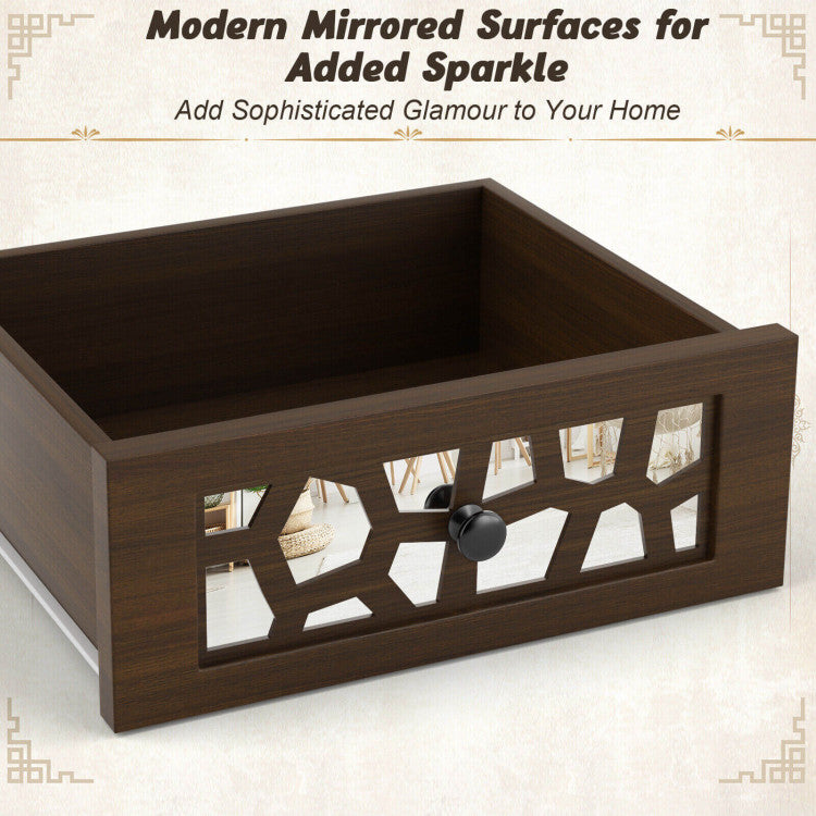 -Drawer panels with unique mirrors on the outside to bring style and glamour to your home