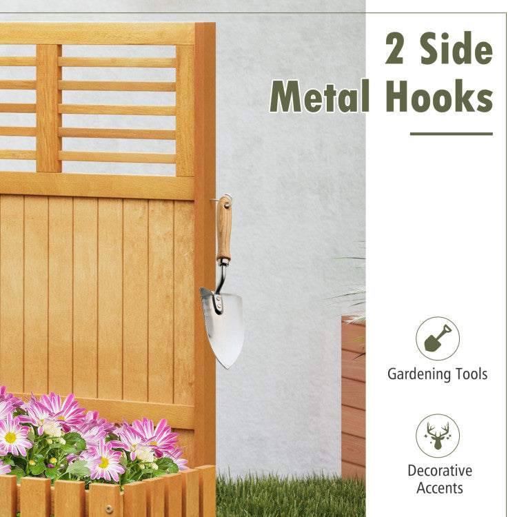 -2 side hooks allow for personalized touches by hanging floral arrangements