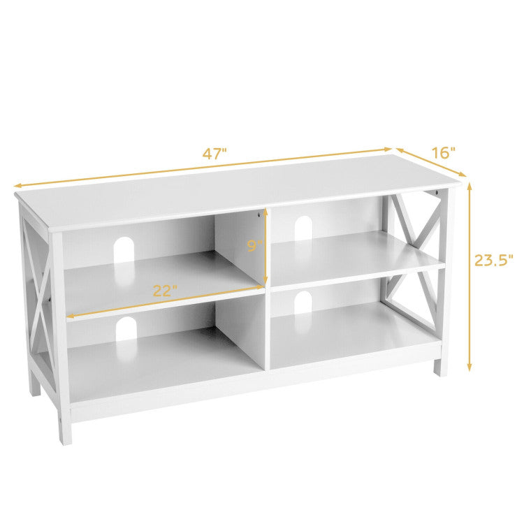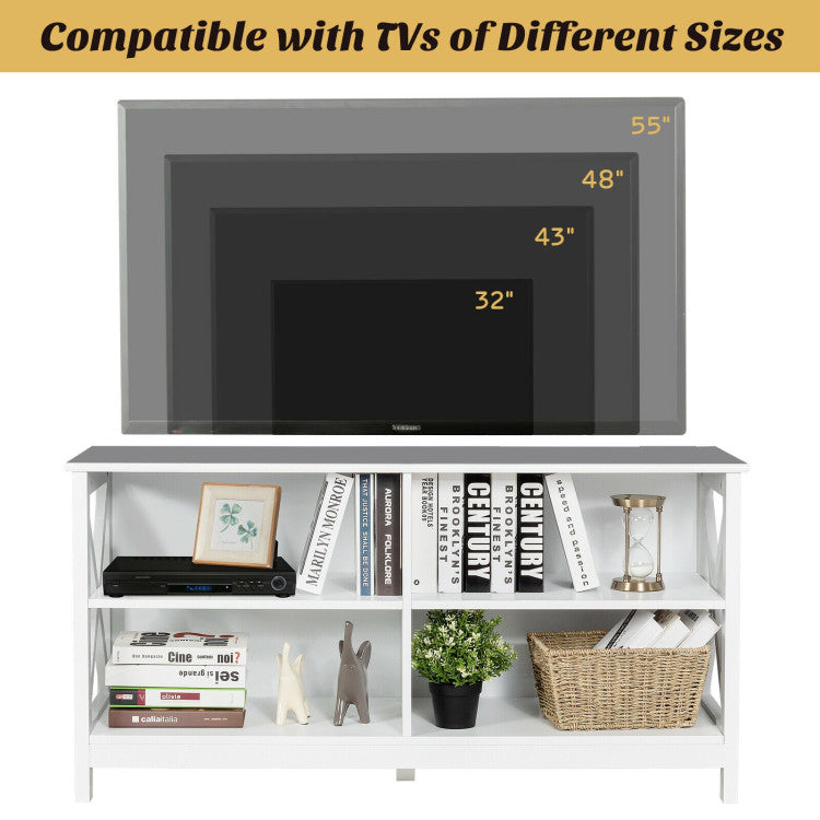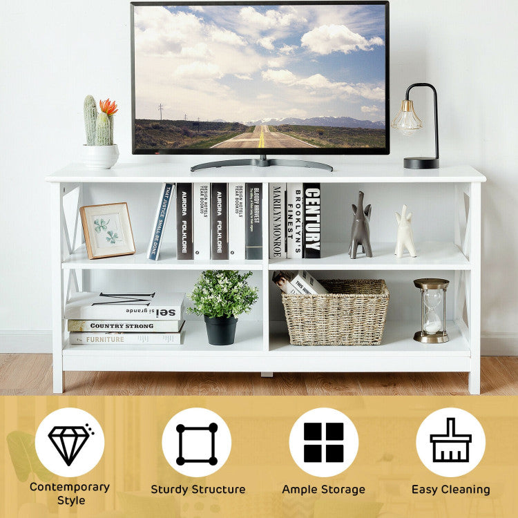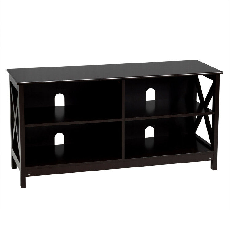 -Open compartments provide ample storage space for DVD player, books, and other items