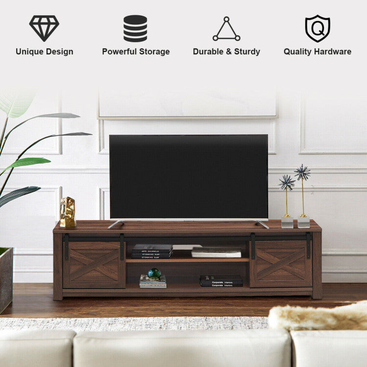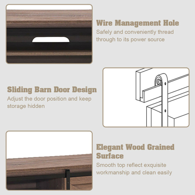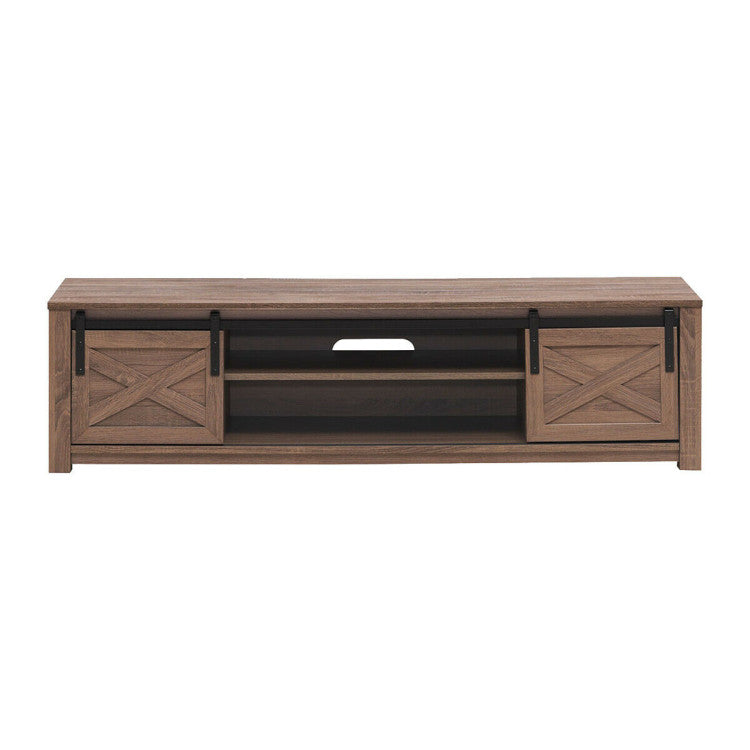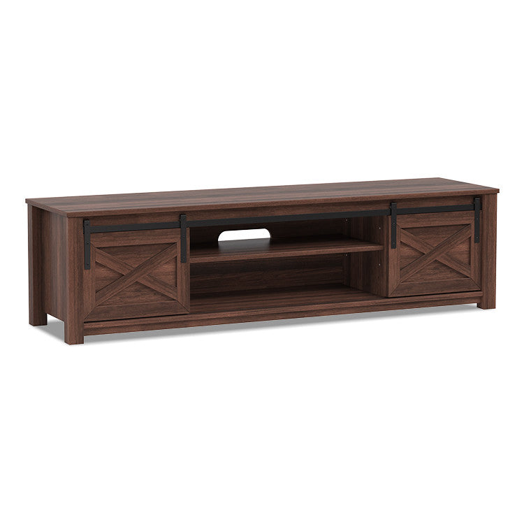 Ample storage space with 2 open shelves and 2 cabinets with sliding barn doors give it a function to be used as a storage console in many occasions to accommodate books, DVD player and other essentials from dust and keep hidden for privacy. The adjustable shelves can be adjusted into 3 different heights for better space division. Convenient cable management to organize cords and wires in order without messy. Heavy-duty MDF and engineered wood structure promise durable and sturdy use with easy cleaning surface.