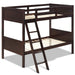This bunk bed combines natural high-quality rubber wood and poplar wood to enhance the stability and durability. The bunk beds horizontal slats and headboards come together to pay homage to its craftsman inspired design. It is equipped with safety guardrails on the top bunk and a secure, easy-to-climb 4-step ladder to provide easy access for children. Moreover, the simple and compact design won't take up much space in your room or apartment, and it can perfectly blend into any decor. Moreover, the sleek painted surface makes it easy to clean and maintain.