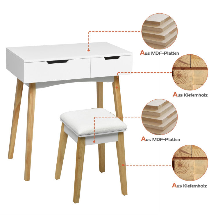 This dressing table set with exquisite craftsmanship and an elegant white appearance is a good decoration for your home.
